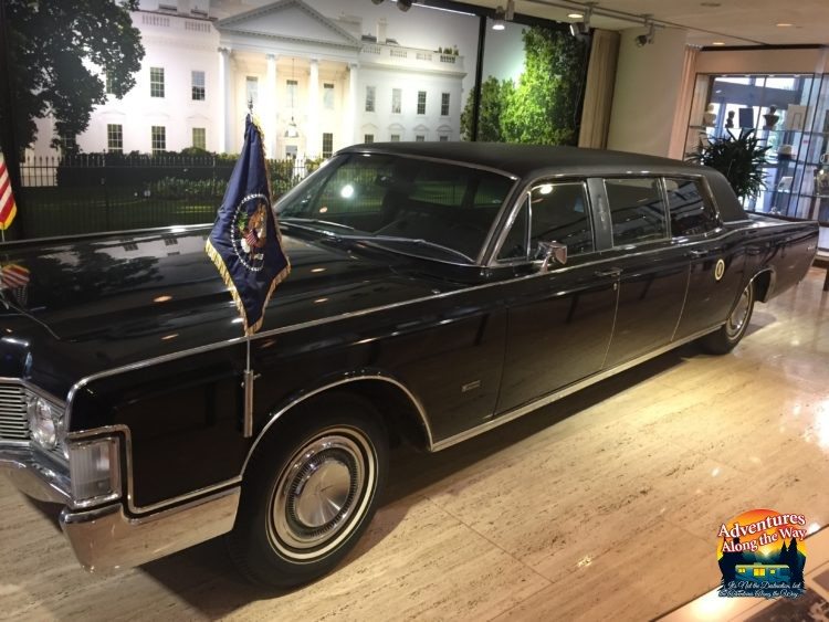 The limo pictured here was a replica Johnson ordered prior to leaving office. Had he ordered it after his term he would not have been able to have the Presidential seal or flags. But Johnson had to show off back home, so he made sure to order it with all the trimmings. The only difference between this vehicle and the official Presidential Limo is this one is not bullet-proof.