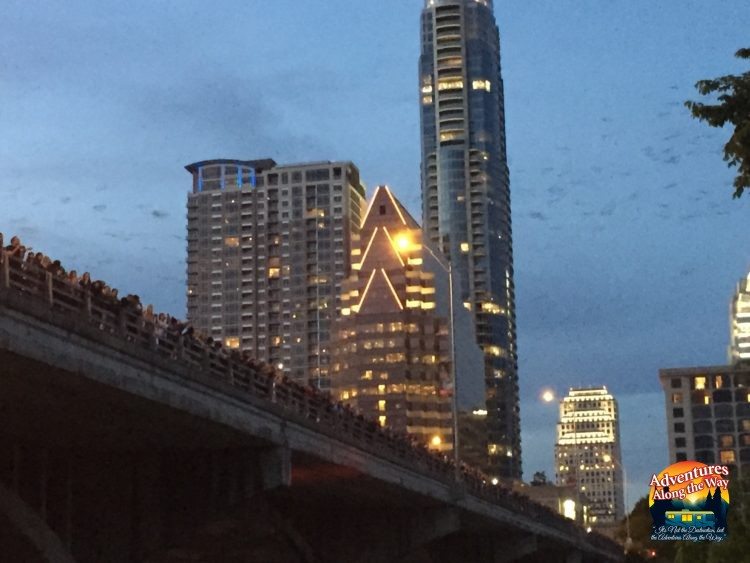 At dusk, we ventured over to the Congress Bridge to watch the huge colony of bats take flight. Austin is home to one of the largest migratory bat populations in the country – around 1.5 million. The Austin bats are Brazilian free-tailed bats. They’re medium-sized bats with broad, black, forward pointing ears, and wrinkled lips, long and narrow wings, and typically attain reddish to dark brown or gray fur color.