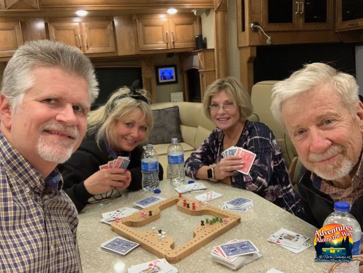 One of the highlights for us was connecting with our good friends George and Pam. It’s always fun to meet up with friends along the way, and we all had a blast together. Have you ever played Pegs and Jokers? It’s a game popular with RVers. We love it.