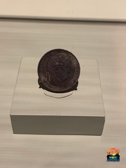 A Five Franc Louis Philippe coin. According to family legend, young Will “borrowed” this coin from his mother and tossed it into the Mississippi River to teach his friends how to look for gold.