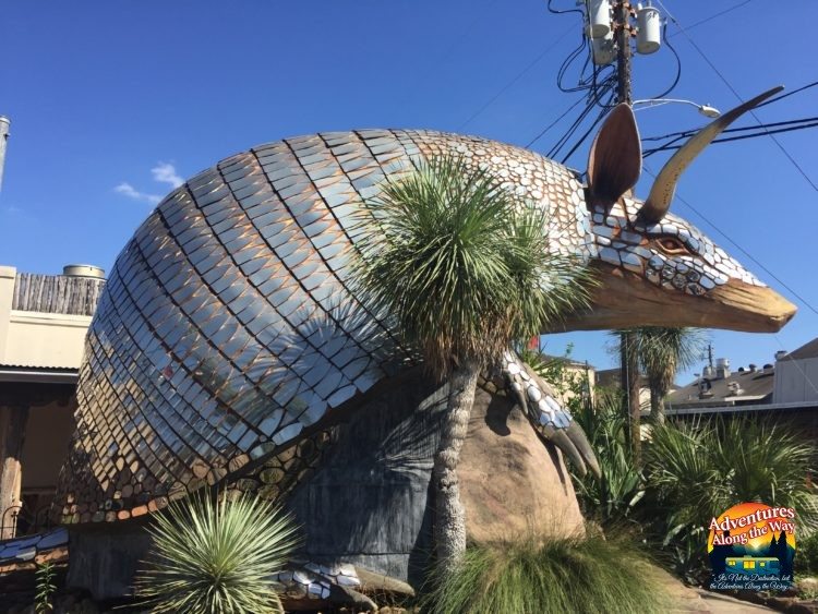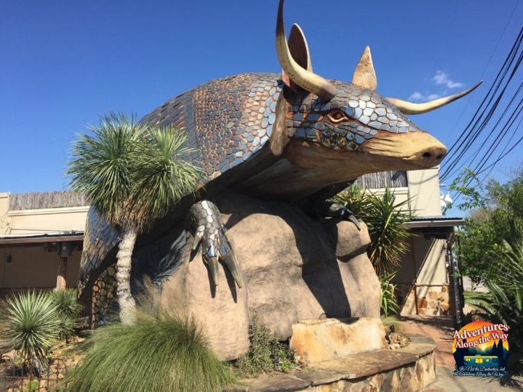 Since 2008, this 14-foot long, 22-foot tall steel-plated armadillo with longhorns has greeted visitors to Goode’s BBQ. Its eyes glow red, and smoke pours out of its nostrils. Quite the sight.
