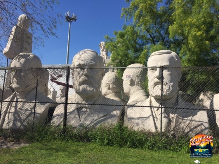 Located behind a chain link fence in an industrial area of Houston, the “Giant President Heads” are the work of artist David Adickes. The series of heads were originally displayed at theme parks in South Dakota and Virginia, but both have closed and the heads were relocated to Adickes’ storage lot.