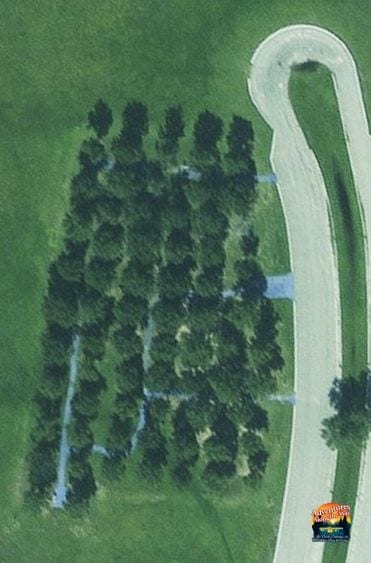 The park also features a unique walking path and sitting area. Each tree is from a different county in Alabama, and the trails represent the rivers that flow throughout the state. From above, you can see that the park is laid out in the shape of the state of Alabama.