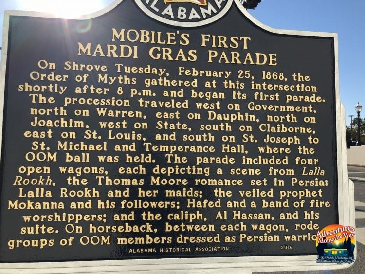 After the capital was moved to New Orleans, the first recorded Mardi Gras street parade in New Orleans took place in 1837. Although in Mobile, they have a plaque commemorating the first parade in Mobile in 1868.