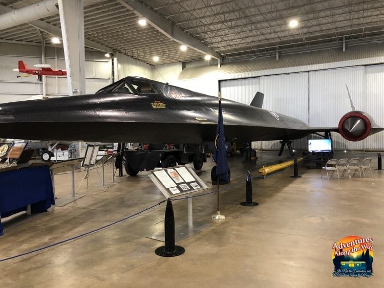 The A-12 Black Bird, a super-secret spy plane with a wing span of 65 feet and 125 feet in length. This airplane flew 2,300 miles per hour and 93,700 feet high. It was used by the CIA in 1965 for spy missions.